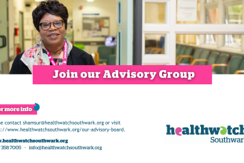 The Advisory Board is currently looking for more members. My advice for anyone who is interested is to carefully read through the role description and contact info@healthwatchsouthwark.org to find out more. You can think broadly about the skills and experience which you might have that you could bring to the role. The Board needs to represent the communities of Southwark so lived experience, voluntary experience and professional experience are all really useful, as well as knowledge about local communities. It’s important that you can commit to the time required so it’s worth discussing this with the team. So far, I’ve found it that it’s possible to fulfil the role alongside my full time job. I’d definitely recommend the role as a great opportunity to help to improve health and care in Southwark.